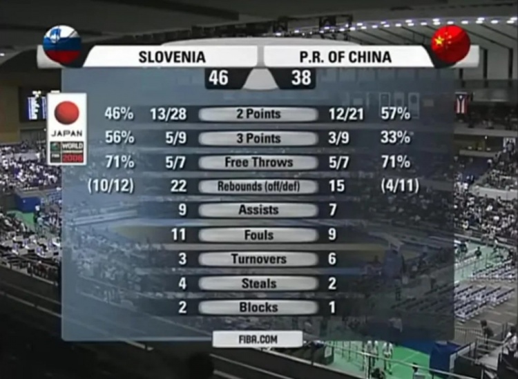而原因也不难猜,前面说了,斯洛文尼亚有6个场均10分左右的球员,但没有一个超过13.8分,缺少一个像姚明这样的万能开罐器,而且,斯洛文尼亚6人之外的轮换实力断档,和中国拼了半场投抢,属于拿体能换领先。遇到擅长拖阵地打烂仗的中国队(我有姚明你有吗),被追上也不算意外。